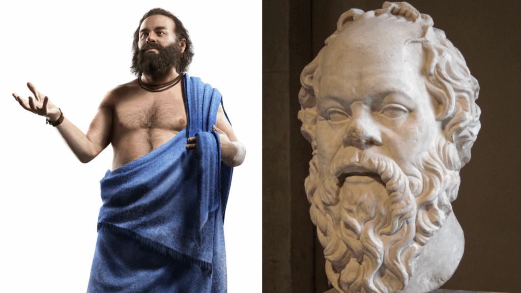 Além disso, é possível cruzar com figuras históricas como Péricles, Sócrates, Pitágoras, Cleon, Brásidas (e muitos outros). Esses personagens participam ativamente da narrativa, eles trazem dilemas morais, filosóficos e políticos que ainda fazem sentido no mundo real. É possível dialogar com Péricles sobre democracia, trocar ideais com Sócrates sobre moralidade, ou ajudar Hipócrates em experimentos médicos.